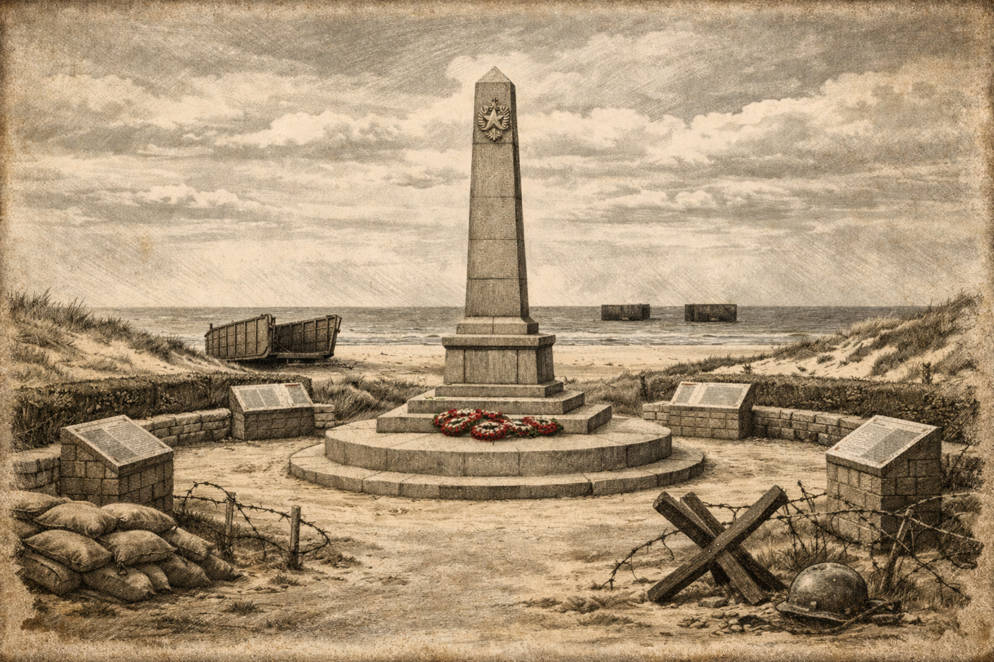 ✎Le Musée du Débarquement se situe sur la commune d’Arromanches-les-Bains, au centre géographique des plages du Jour-J. Il est localisé à l’endroit exact où les Alliés ont implanté, à compter du 7 juin 1944, l’un des deux ports artificiels chargés de ravitailler les troupes engagés dans la bataille de Normandie.